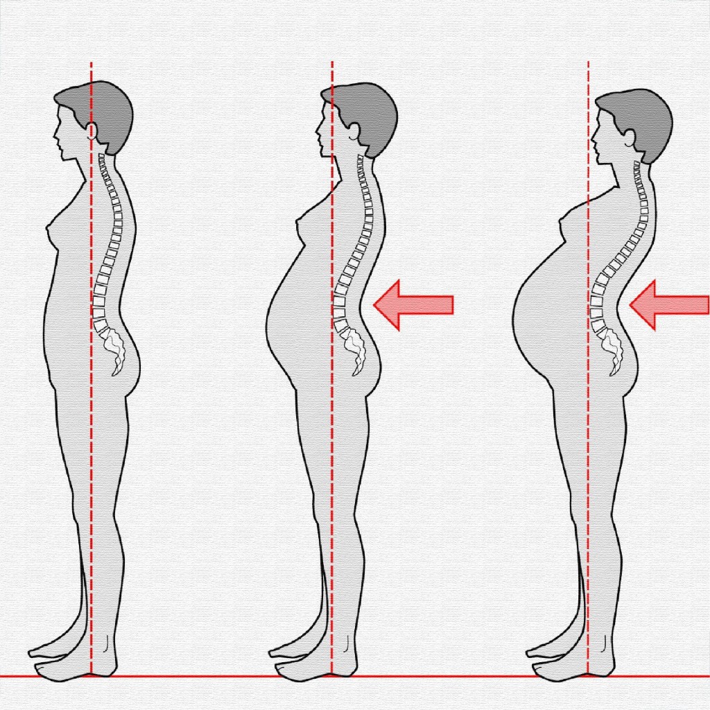 Durante o período de gravidez, cerca de 50% das grávidas sentem dores intensas na coluna. O principal motivo para o aparecimento destas dores é a mudança da postura. A região anterior ganha o peso da barriga, mudando o centro de gravidade da grávida. O aumento de peso corporal também pode influenciar este desconforto na região lombar.